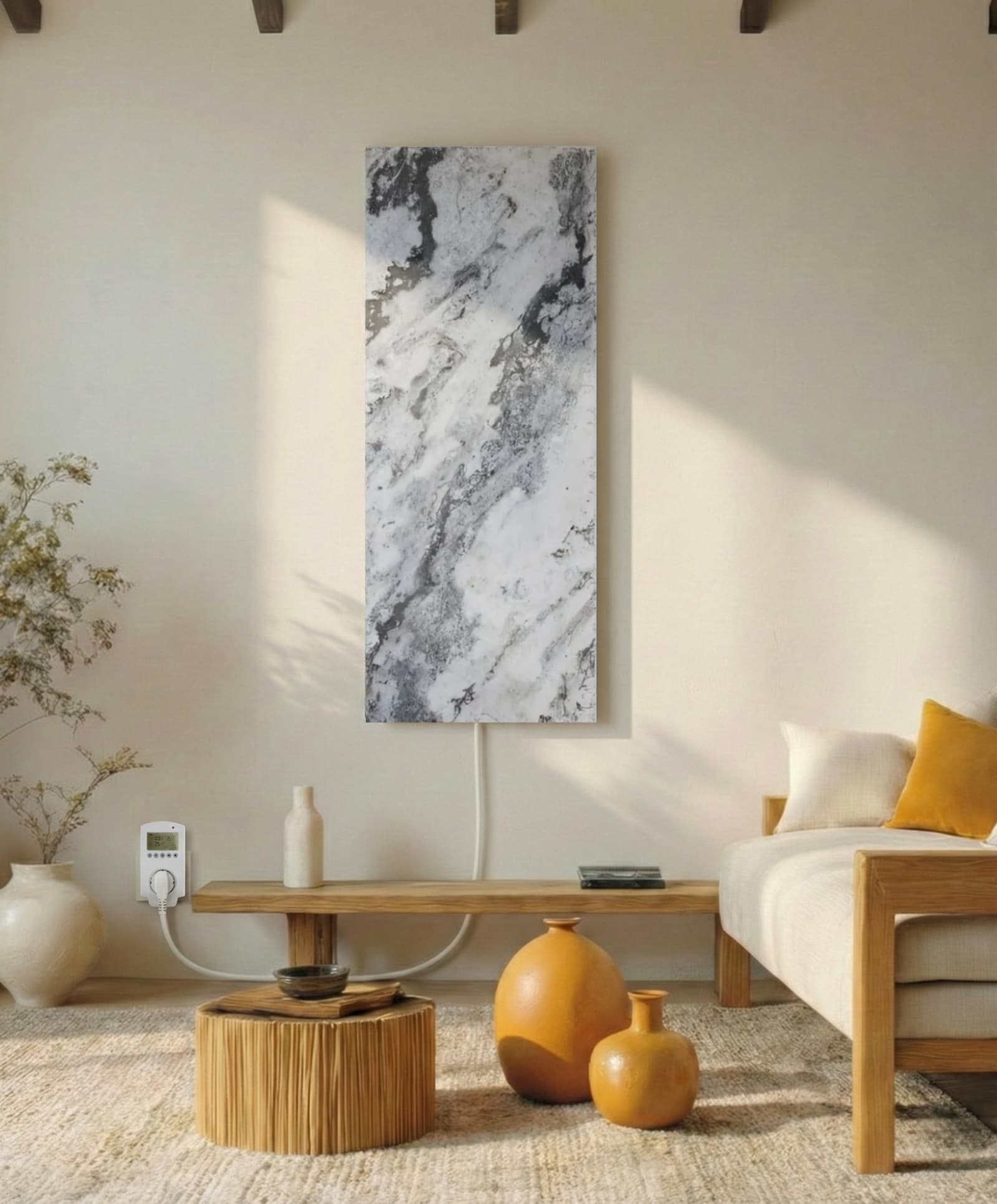 Immaginate di sedervi al sole: quel calore delicato e uniforme che rilassa profondamente e dona una sensazione di benessere. Ecco, il riscaldamento a infrarossi offre esattamente la stessa sensazione. È naturale, piacevole e avvolge la stanza in un'atmosfera di comfort. L'elegante pietra naturale lo rende non solo una soluzione di riscaldamento sostenibile, ma anche un elemento di design senza tempo che dona carattere alla vostra casa.